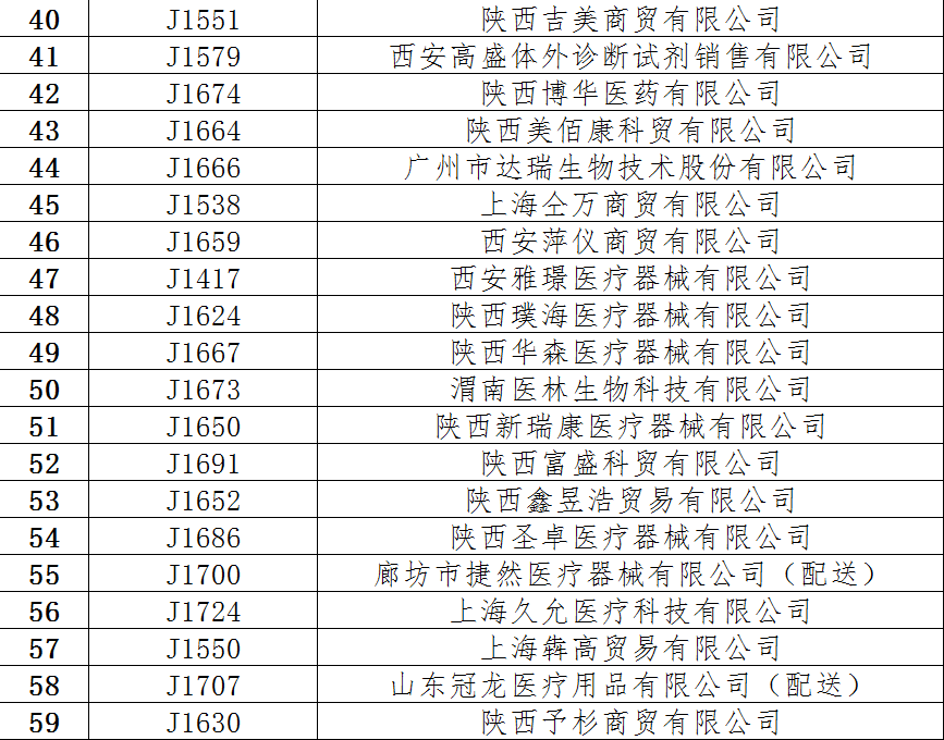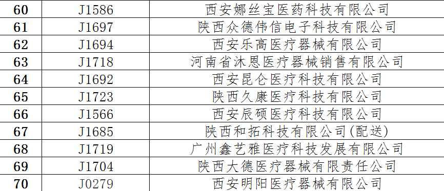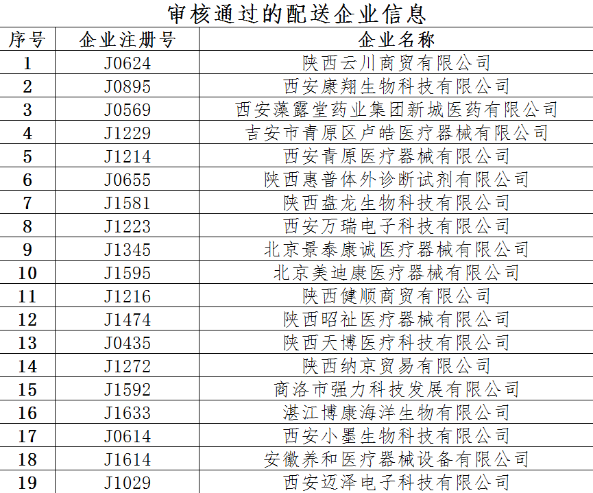 根据《陕西省医用耗材网上阳光配送工作管理办法(试行)》(陕卫药政发〔2016〕29号)要求,现对申报资质材料完备的医用耗材配送企业予以公示,其它企业请继续补充材料,待材料完备后予以公示。