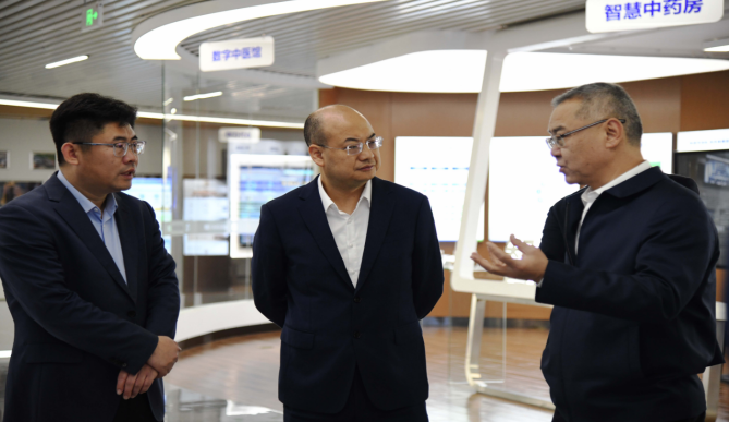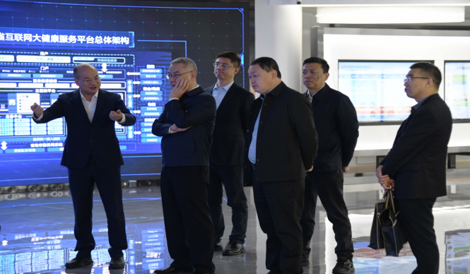 2025年10月31日,陕西省药监局党组书记、局长冯锋,副局长张宸、流通处处长张宇、网信办主任贺智平及陕西省医药协会会长、利君制药董事长司杰等一行赴山东微医互联网大健康集团调研,实地了解AI医疗平台、AI医药平台、AI中医药平台为主的三大业务板块运行情况和助力“三明医改、三医联动”落地有关情况。