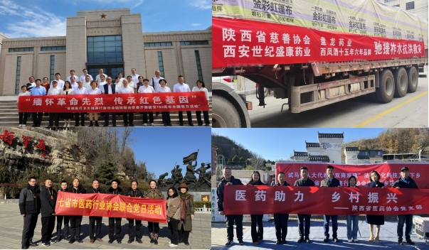 积极践行社会责任,先后组织“利君制药、世纪盛康、盘龙药业”等重点会员企业,助力宝鸡、山阳、柞水等地抗洪救灾,支援商南县试马镇等地乡村振兴,共计捐赠资金、药品和扶贫物资约600万元。