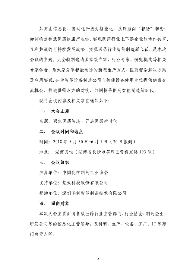 【转发】关于召开2018中国医药产业智能制造推进大会的通知
